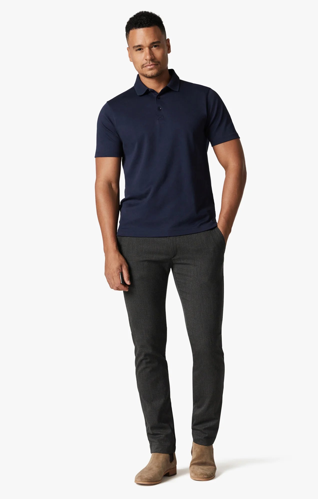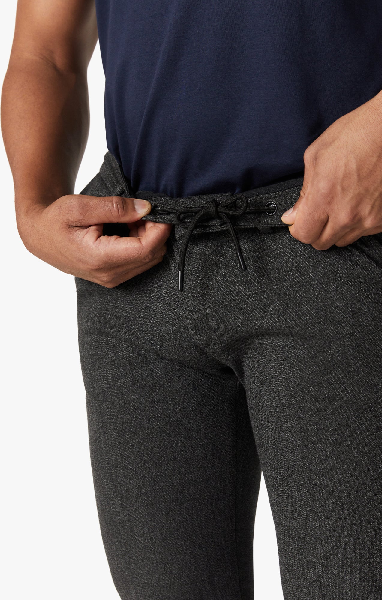 Dressing up shouldn’t mean compromising on comfort. That’s what we kept in mind when designing these upscale pants in a sleek dark grey hue and a slim fit. Made from dressy fabric that drapes flawlessly, this premium style boasts superior breathability and stretch that brings out your inner confidence and looks incredibly elegant. These feature a hidden drawstring waistband.