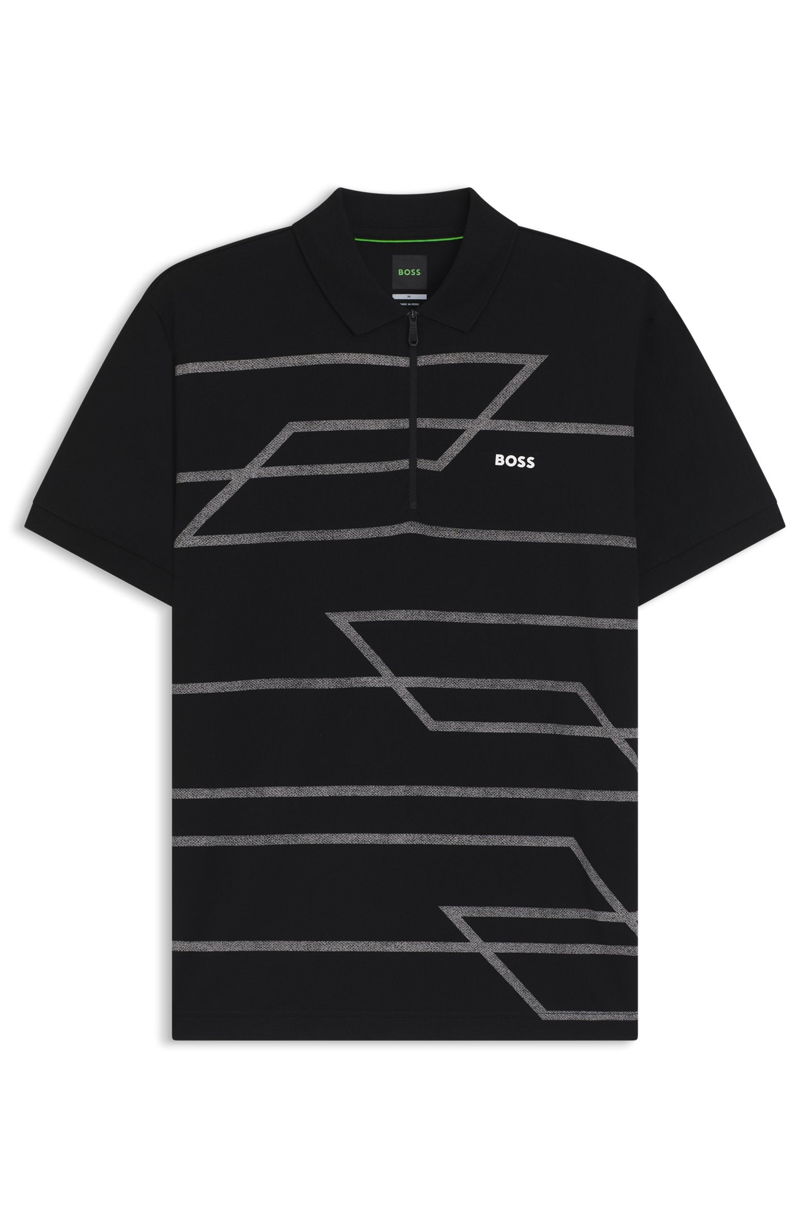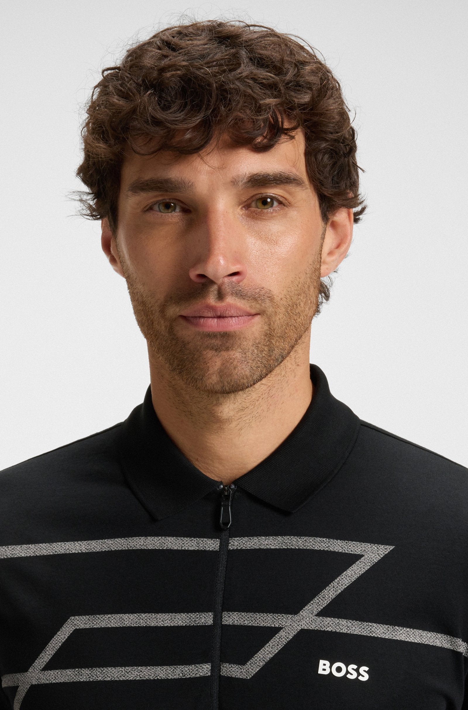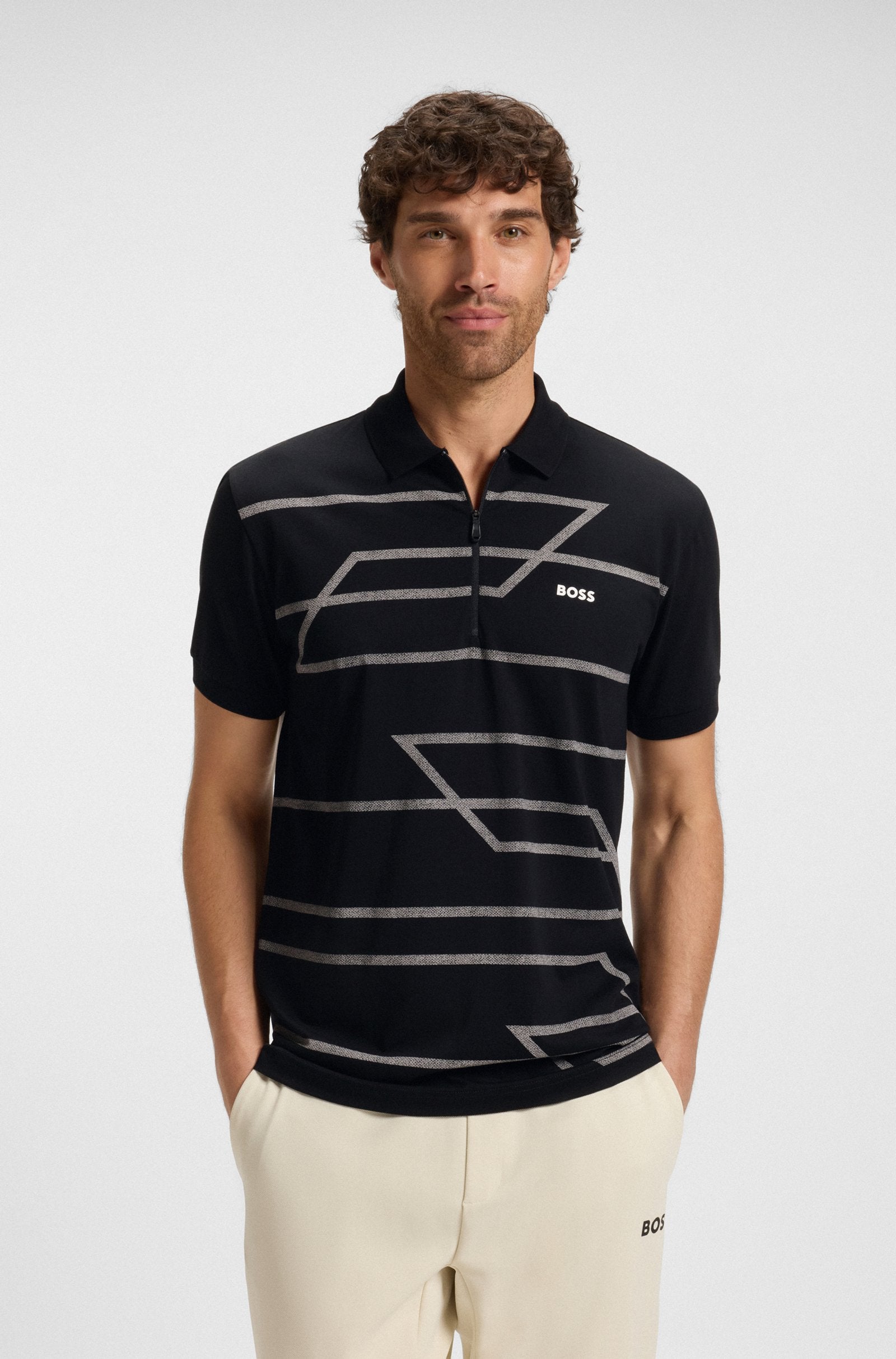 With a dynamic melange print, this BOSS Menswear polo shirt is a strong choice for active days. Quick-dry cotton jersey. Zipped placket. Slim fit
