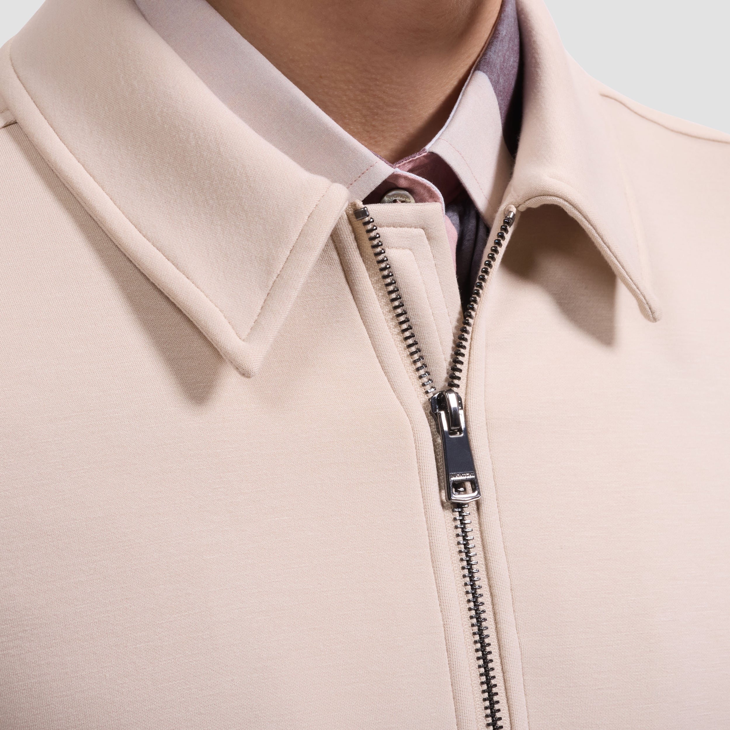 Elevate your everyday layering with this full-zip knit jacket crafted in Soft Touch™ performance fabric for a refined feel and all-day comfort. Designed with a sleek point collar and two vertical front pockets with covered zippers for a clean, modern look. Elasticized rib cuffs with subtle textured stripe detail and a smooth hem complete the polished silhouette.