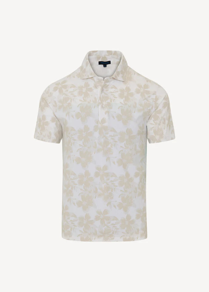 Crafted from our exclusive Peruvian Pima cotton stretch jersey, this short sleeve polo fuses effortless comfort with refined luxury. The silky-soft fabric drapes elegantly, while the tropical floral motif adds a contemporary detail. Perfect for warm-weather dressing.